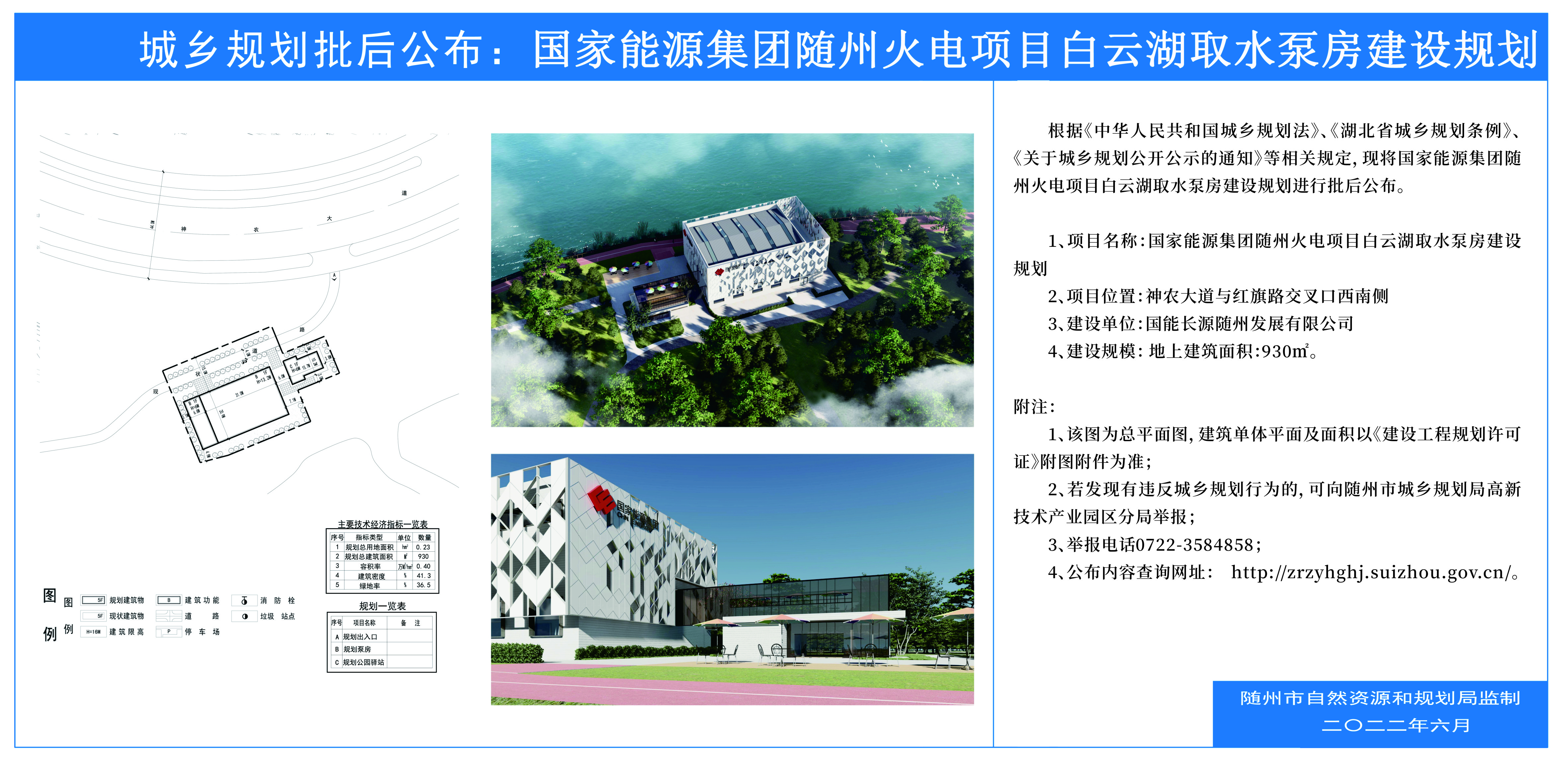 国家能源集团随州火电项目白云湖取水泵房建设规划批后公示