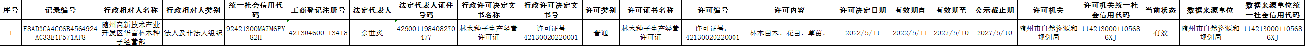 林木种苗管理审批:林木种子生产、经营许可证核发(随州高新技术产业开发区华富林木种子经营部)