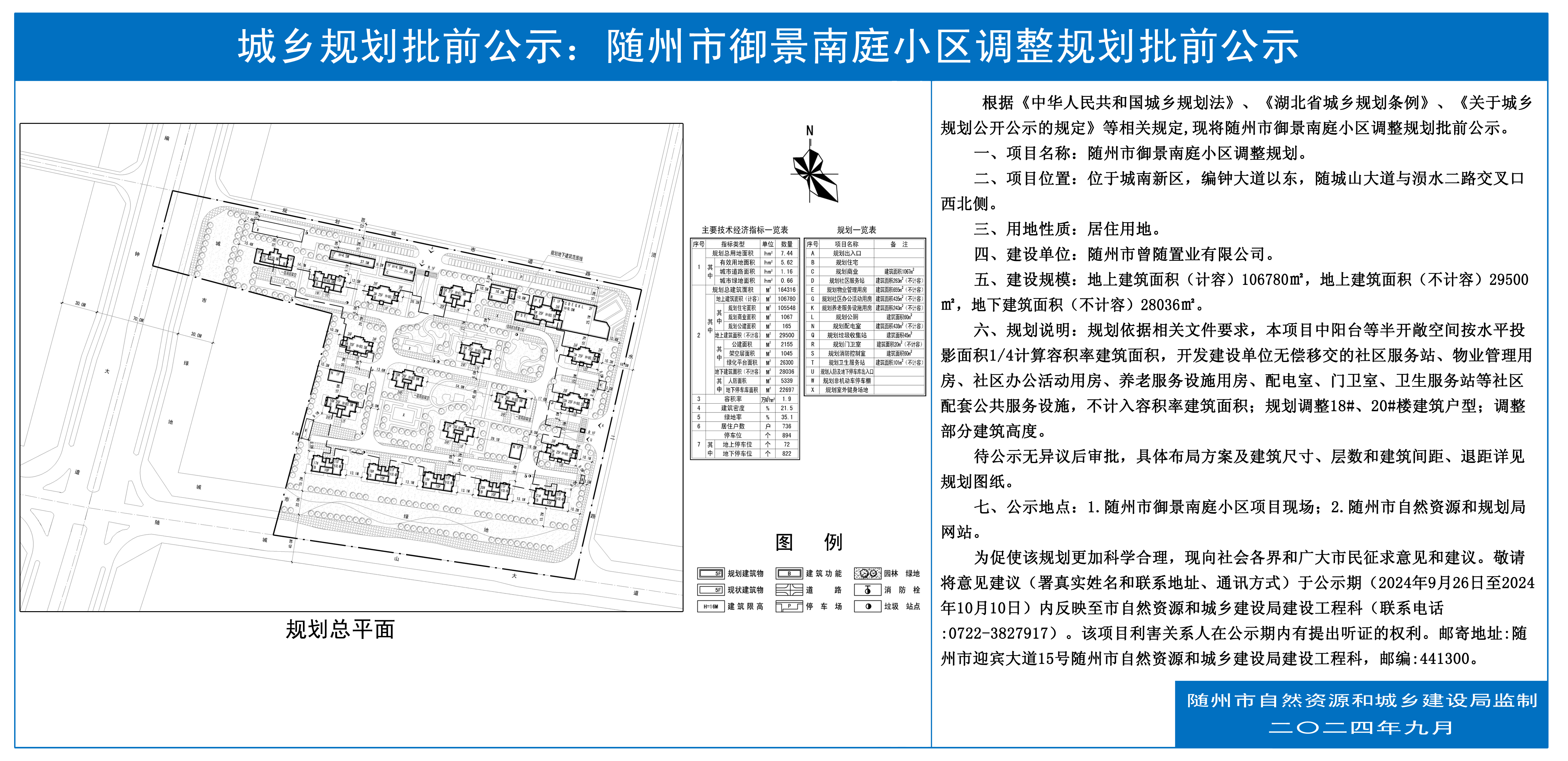 城乡规划批前公示:随州市御景南庭小区调整规划批前公示